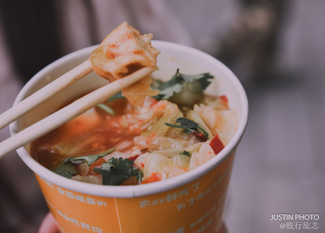 台湾酸菜臭豆腐:分量很大,有十来块豆腐,口味以酸为主,酸臭酸臭的,对于吃惯了长沙臭豆腐的人来说不太习惯。