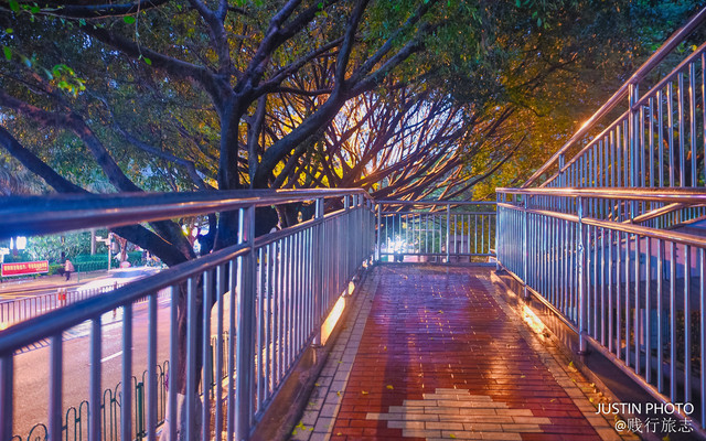 走在厦大附近的行人天桥上,突见街灯的正好穿透树丫,拍下一张照片后,我们才蓦然发现白昼已尽,厦门迎来了它的夜。