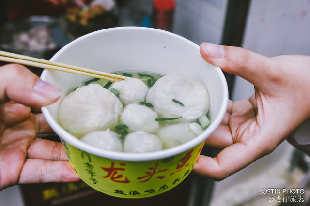 龙头鱼丸:手工鲨鱼丸,建于1946年,是鼓浪屿的老字号,鱼丸有大小两种,里面的馅料都是一样的,只是个头大小的区别,于是两种都要了,结论是大颗的吃起来比较爽。