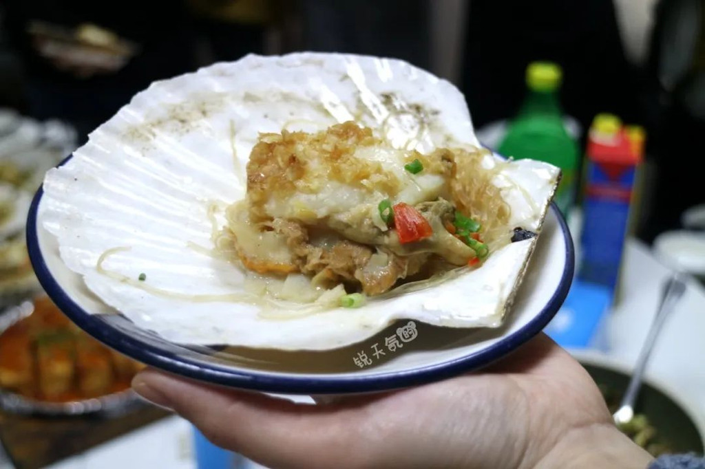 一个巴掌都盖不住的大扇贝,在这里名曰“潜水贝”,依然采用简单的烹饪方法——蒜蓉蒸,那么大个的贝肉,我足足咬了三口,鲜嫩味美,太赞了!