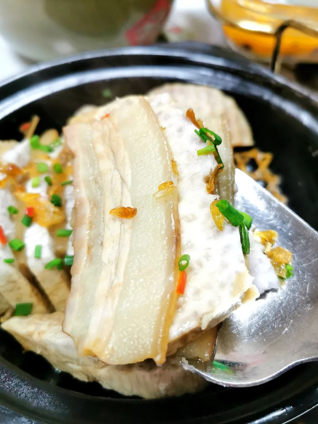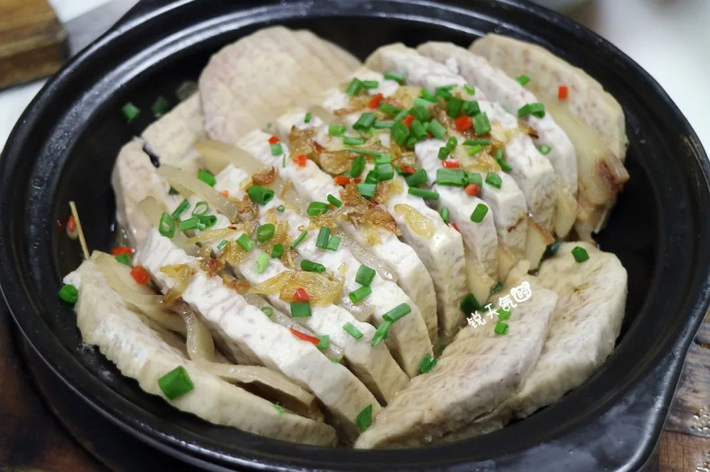 芋头煲,酥松绵密的槟榔芋,夹着油润的三层肉,芋头沾染了肉香,更添美味。