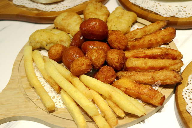一口肠、甘梅地瓜、薯条、鱿米花、上校鸡块,酥香适口,各有风味,好久没吃油炸食品的人,幸福感满满啊!