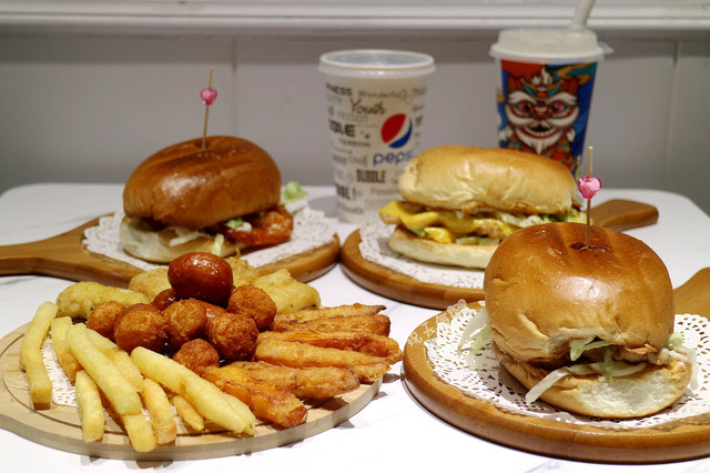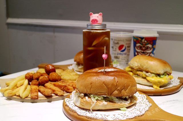 看着菜单,随意点了几样招牌菜,秘制猪扒包、芝士猪扒包、藤椒鸡扒包和小吃拼盘等,一下子摆满了一桌。