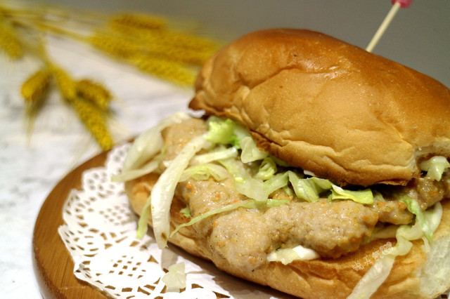 面包烤得又香又脆,咬下去“咔嚓咔嚓”地响,猪扒颇为厚实,松软可口,因为腌制时使用了辣椒粉,所以口感上带着似有若无的辣味。猪扒包里还夹了少量生菜,因此肉味香浓却一点也不油腻,令人回味无穷啊!