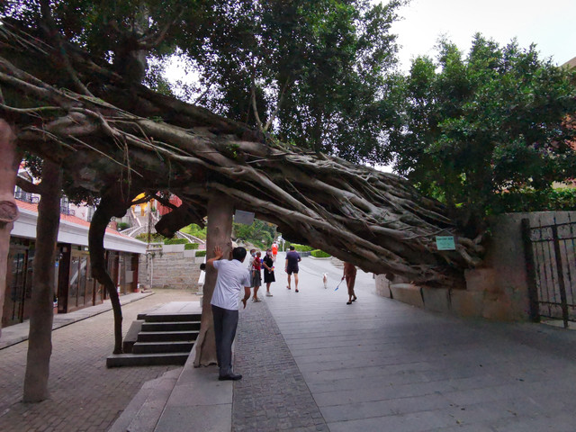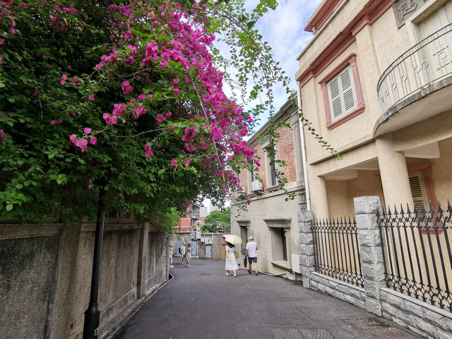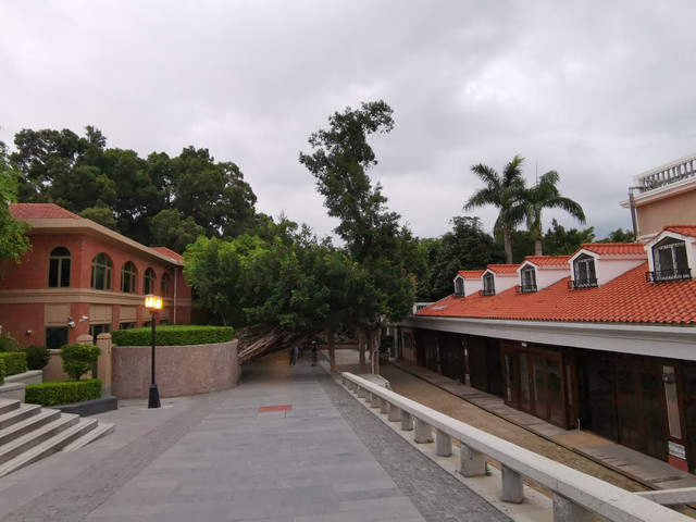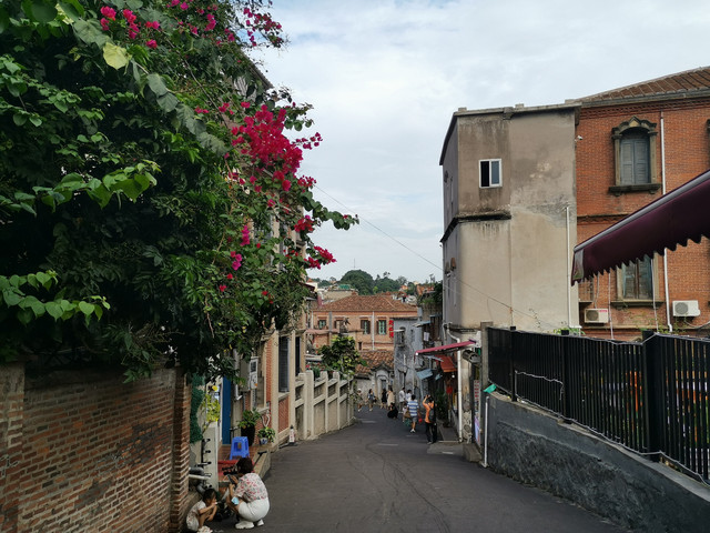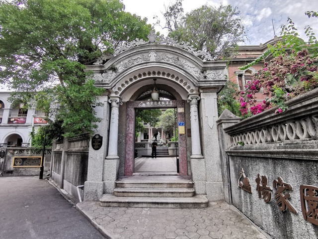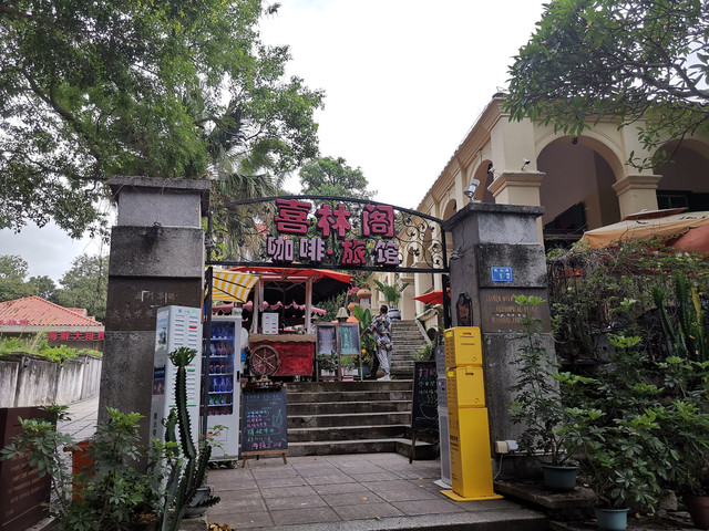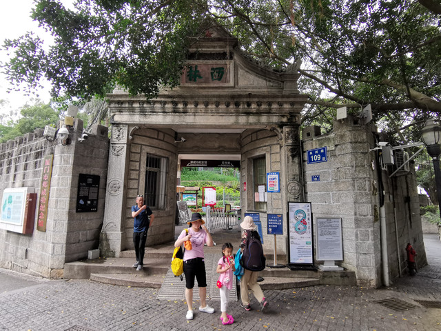 眼前是鼓浪屿著名的庄菽花园,我们计划走观海栈道去千波亭看海上日落余晖,到了这里才知道,初夏时节,太阳并不从千波亭的正西方落入大海,而是日落在鼓浪屿的海滩上,此时天气一片阴沉,估计今天日落余晖也“不靠谱”。为此,我们选择了放弃。