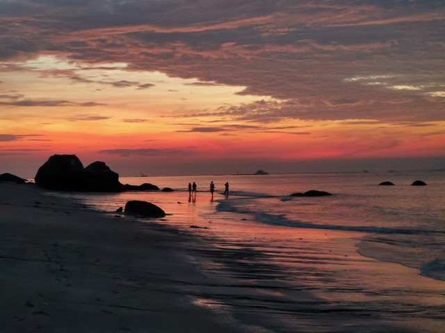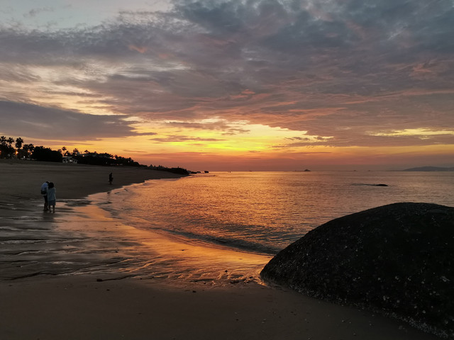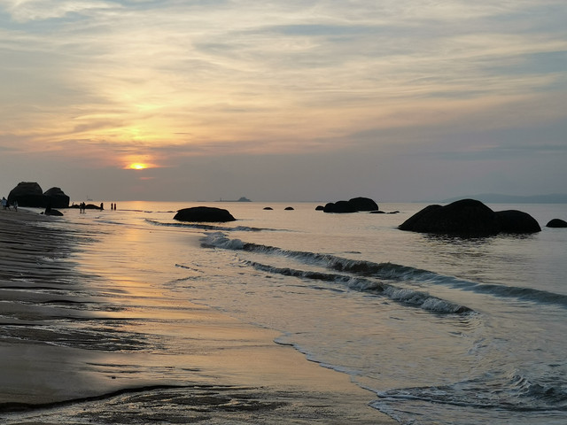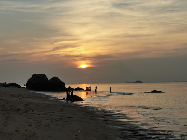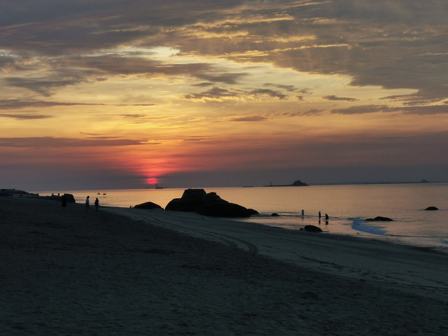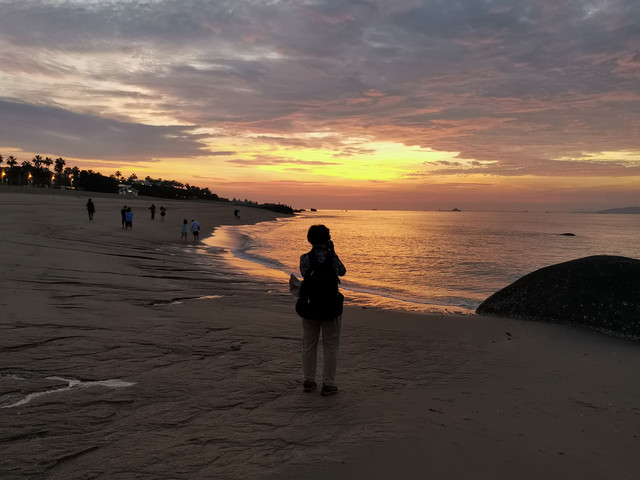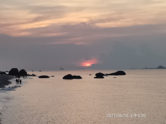 阳光、海浪和沙滩,太阳的光影、看日出的人,构成一幅天然美丽画卷。我们两次海滨看日出,两次如愿以偿!