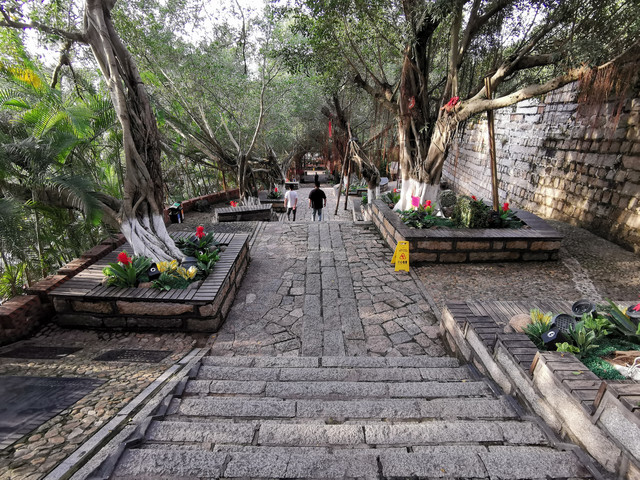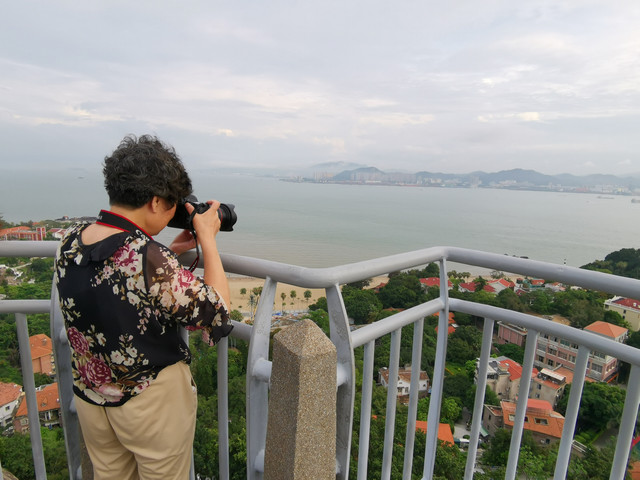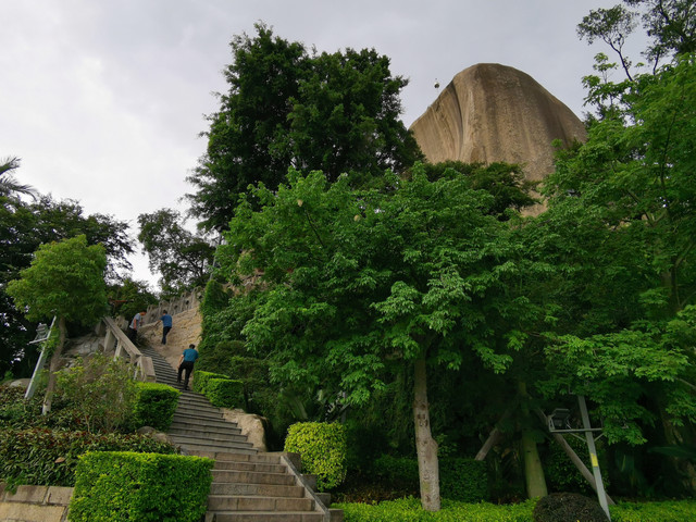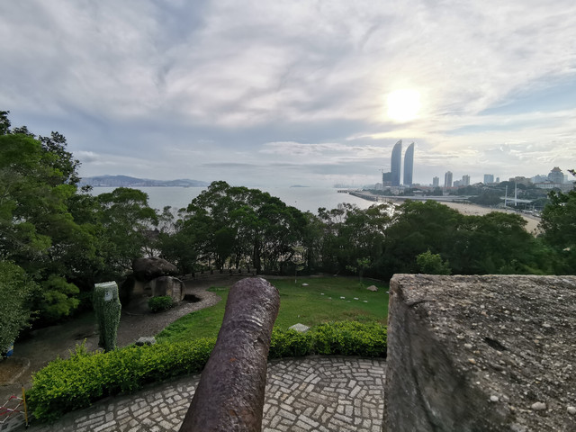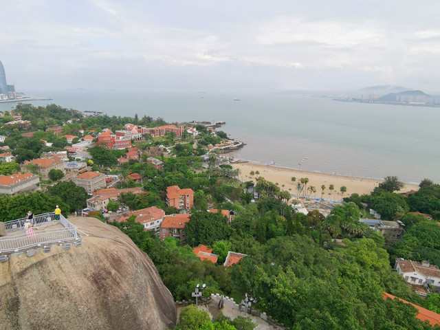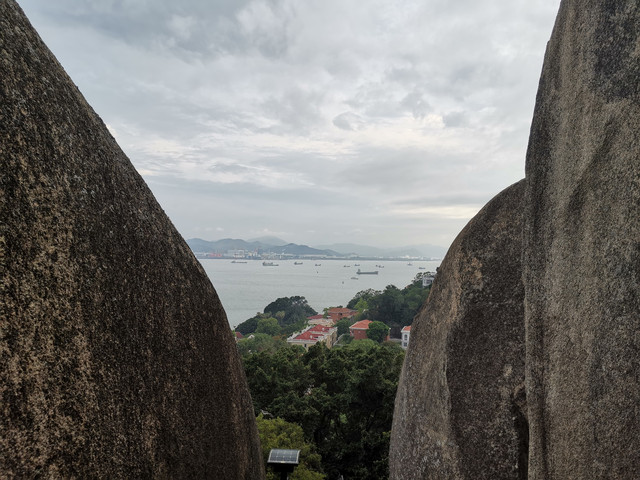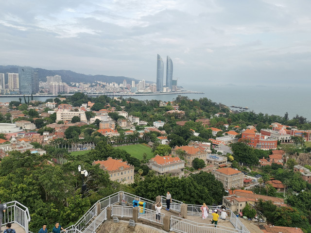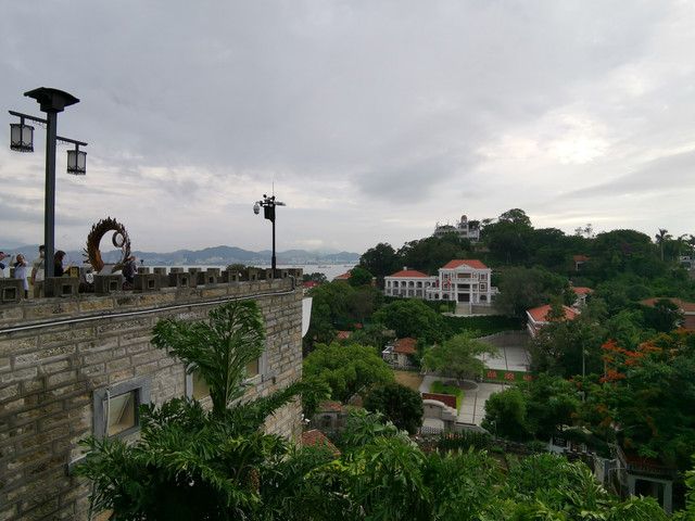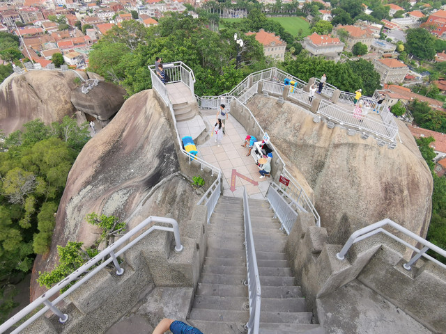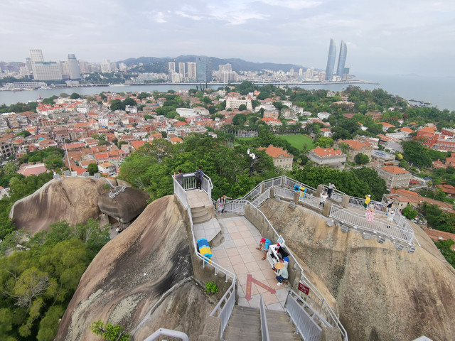 日光岩海拔92米,看起来不算高,但攀登还是颇费一番脚力。眼前是攀登半程的一处观景台,周边的景色很秀丽,它与我们记忆中的鼓浪屿有了很大不同。