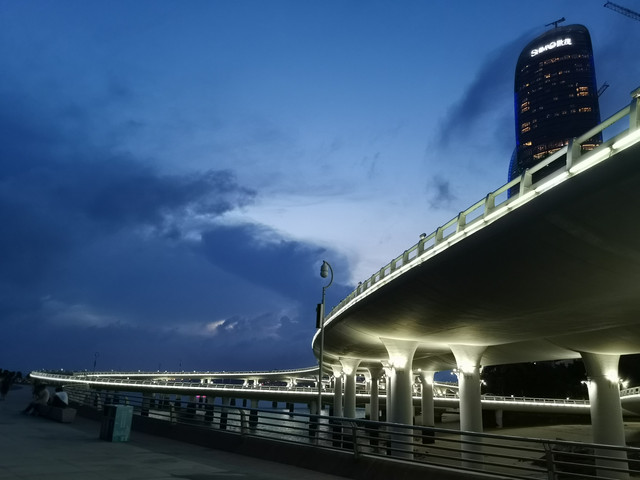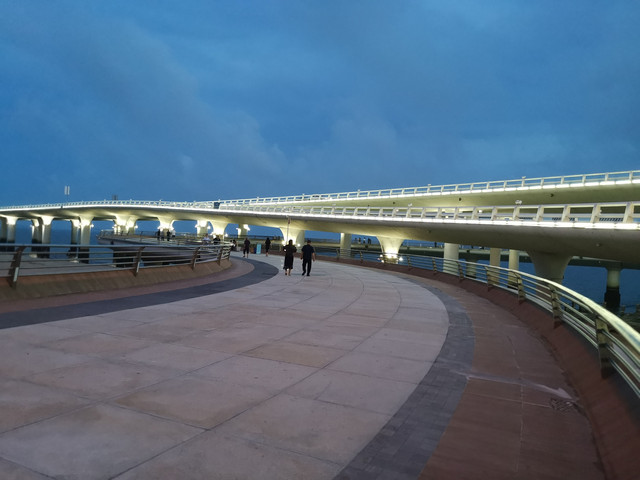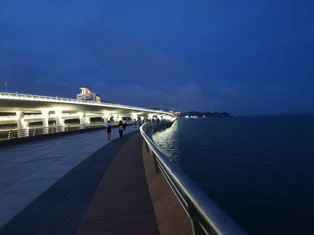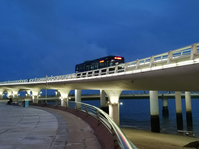 海风习习,海涛声声,深邃的天空充满蓝调,优美的曲线,柔和的灯光,眼前的景象令人赞叹!这就是厦门演武大桥,它是厦门一处新地标。在一个初夏六月的夜晚,我们在这里领略了它的雄伟壮丽!