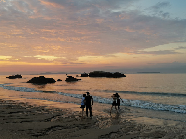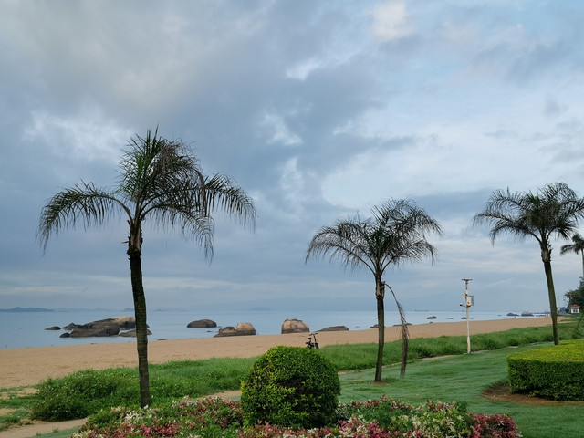 海风椰树,海浪沙滩,美丽鹭岛一海滨、百年学府一浴场。白城海滩美不美,看它一眼就不用说!我们想在这里看日落,但今天的天气不给力,计划再次落空!