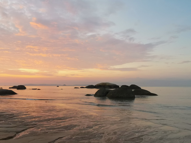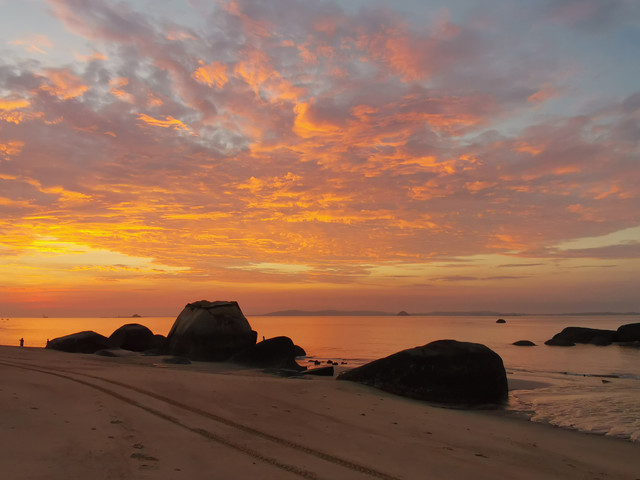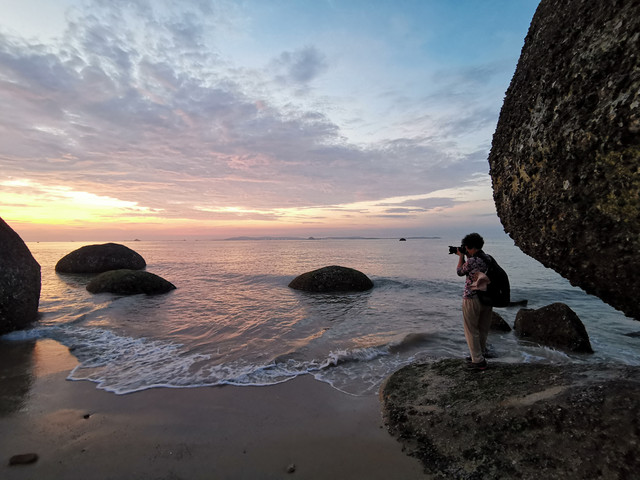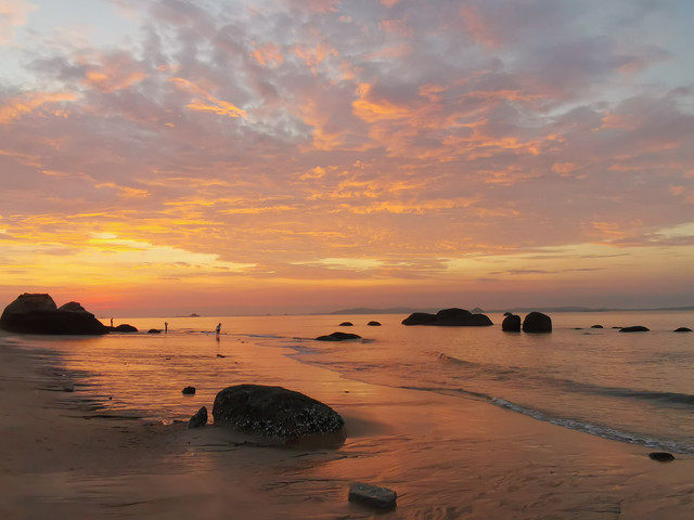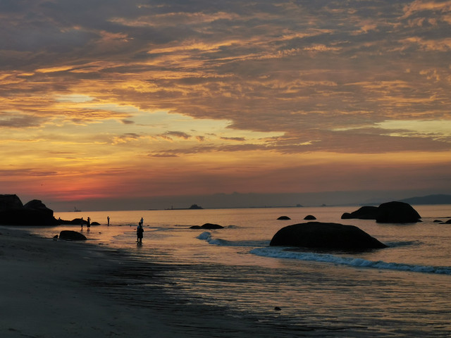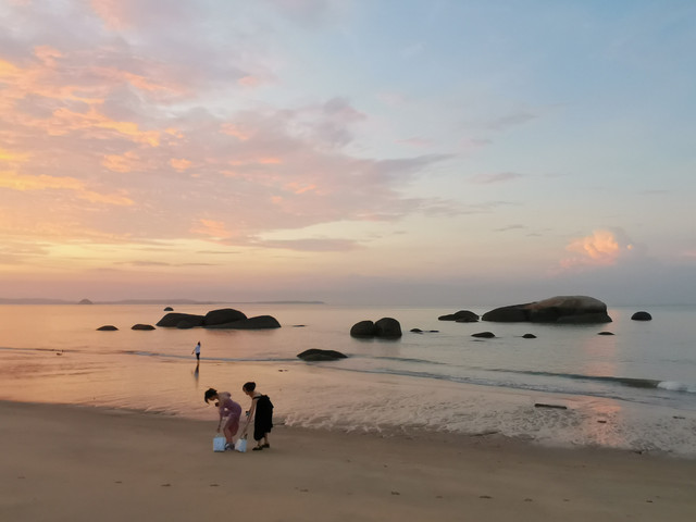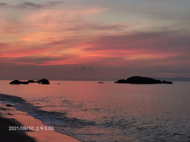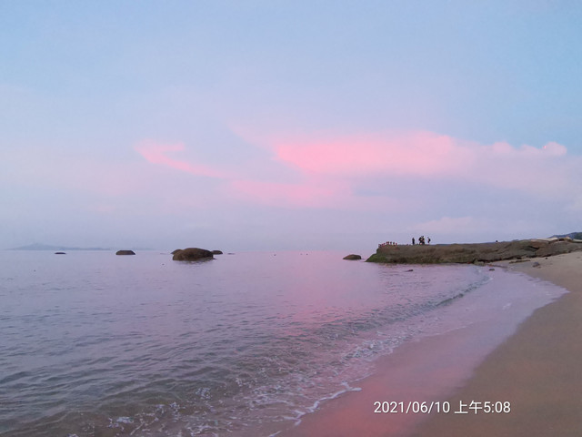 6月9日清晨,我们步行来到黄厝海滨。此刻,厦门多日阴雨后开始放晴,晨曦映照在海滩上、朝霞染红了天空,美景就在眼前!厦门海滨看日出,一路寻觅期待成真,立马感觉就不虚此行!