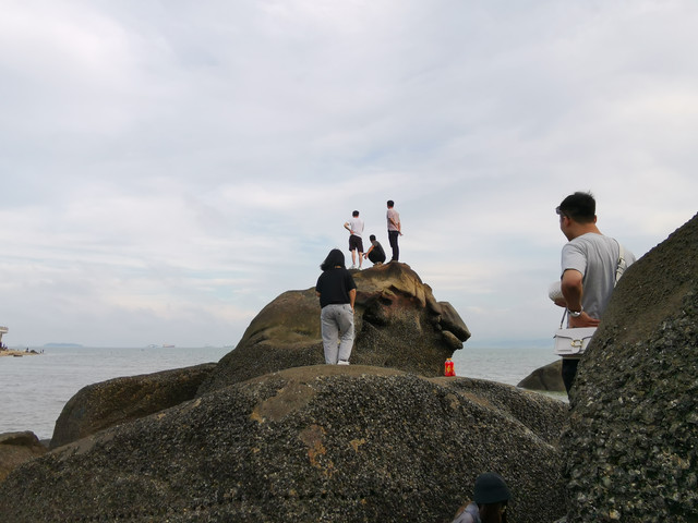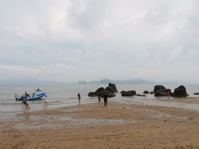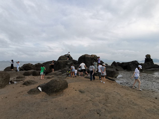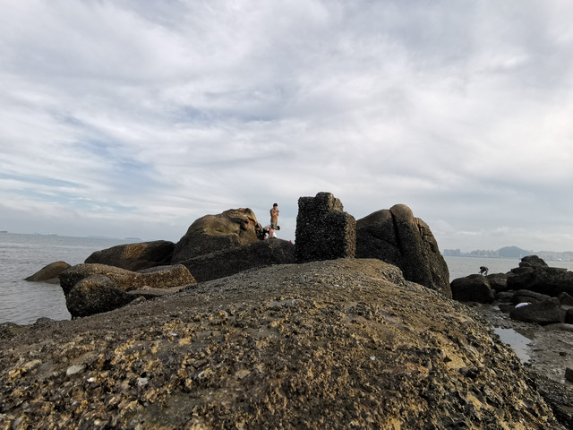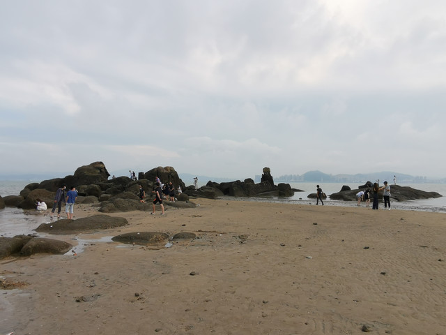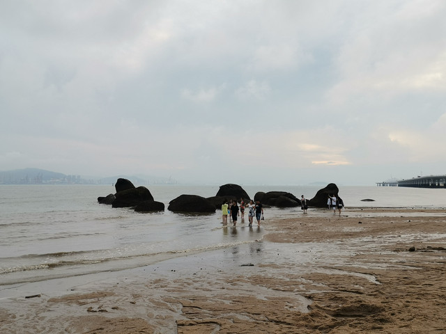 “潮落椰风寨,万人讨海忙”。据说,当地人有椰风寨“讨海”的习俗。看完日出,我们沿着美丽的黄厝海滩,一路向北,前往椰风寨。之前就听说,每当潮汐退去,厦门椰风寨那一段海滨滩涂是个赶海拾贝的好地方,运气好,能挖到些牡蛎,文蛤,沙蚕之类的海产。