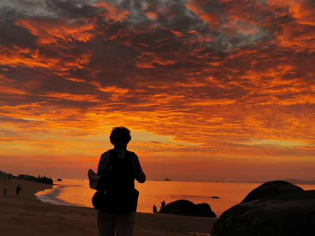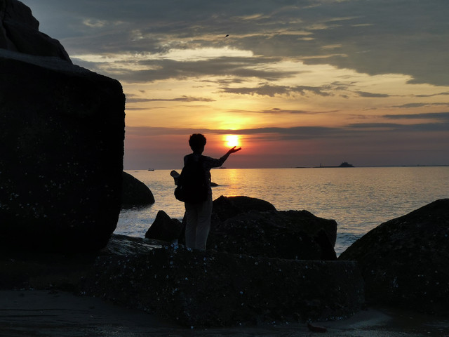 人与海、海与天,海浪与岸礁、海风和椰树,用手托着冉冉升起的太阳,这就是厦门的黄厝海滨日出。只要你选择一个天气不错的早晨来到这里,就一定不会错过!