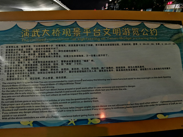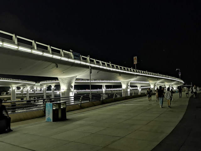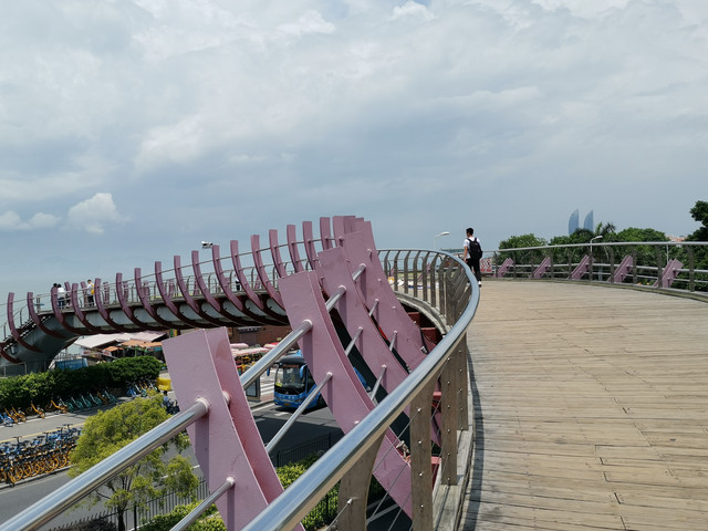 眼前就是演武大桥观景台,这里可以360度看桥、看海、看大厦,可以全方位看大桥和大厦的灯光秀!