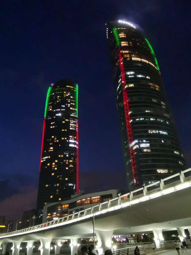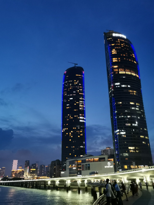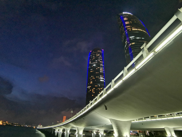 从白城海滩向西,我们沿着海滨栈道一路风景,前往厦门演武大桥观景台,去观看一座临海立交大桥优美的曲线、去仰望一座刺破青天的双子大厦,去看它们夜晚美丽的灯光秀!
