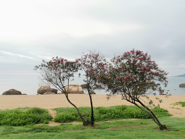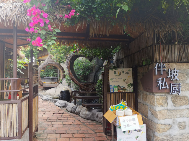 走到椰风寨的绿树红花前,我们就结束了黄厝海滨看日出和椰风寨赶海。当即返回酒店。