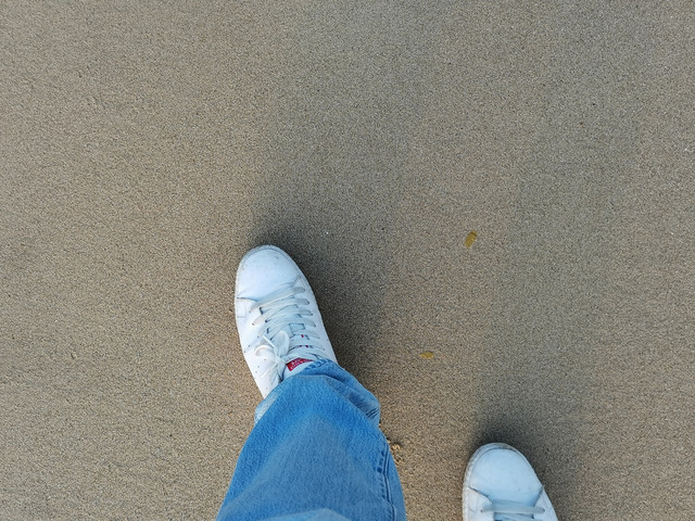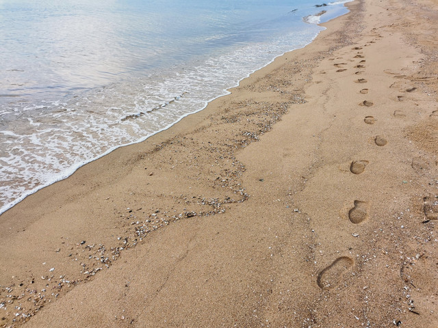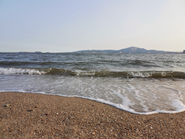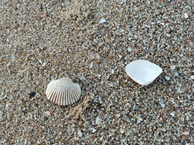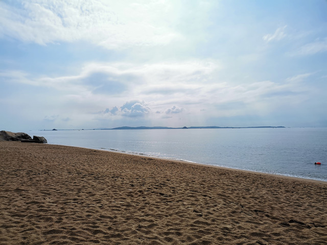 宽广的海滩,软软的沙,适合赤脚去感受她的脉搏和温度。海水冲了上来,淹没了脚跟,淹到了小腿脖子,片刻间又退了回去。海水带走了细沙,沙从脚丫缝隙间滑过,从脚底被抽走,被掏空,弄得脚掌痒痒的。每一波海水冲刷过后,都会有一些粗砂石或者小贝壳留下来,躺在平整湿润的沙地上,一闪一闪,晶莹发亮。