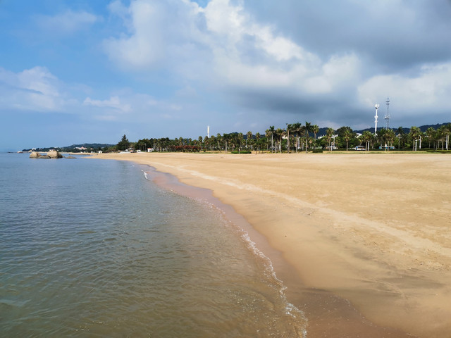 严格来说,白城是一处“半天然半人工”的沙滩。天然的沙滩地,由于海水常年冲刷,一些沙子被海水带走,后来,几万立方米的细沙被运到了这里,对沙滩进行改造和修复。