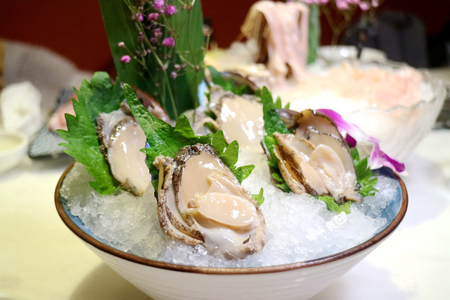 “8头鲍”的意思就是1斤8个的鲍鱼,清洗干净并切成薄片,方便涮食,带着酱香的鲍鱼滋味,独特而新鲜。