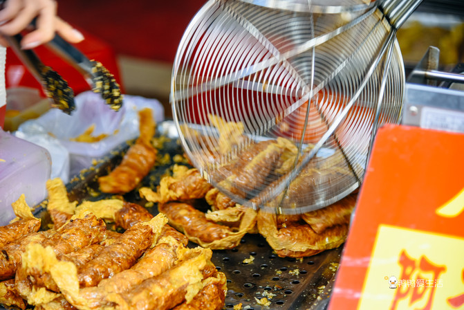 谢霆锋光顾过的阿杰五香,应当是八市里面最网红的一家了。现包现炸,看得见的货真价实,本地人一般会买生的回去炸,或者忍不住买一条炸好的边走边吃。