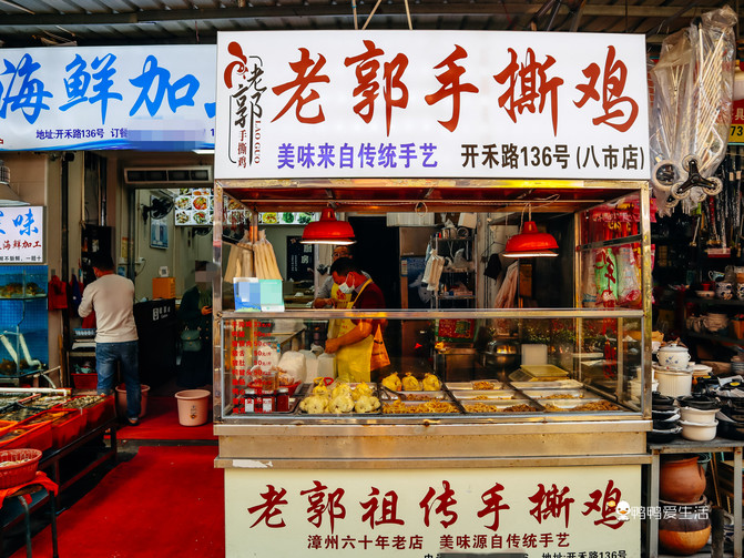 老郭手撕鸡,八市开禾路口进去第一家探味海鲜边上,已经有60多年历史,源自漳州,可以说是八市里面最好吃的一家手撕鸡。除了鸡肉还有各种配菜,猪舌、鸡爪等等,每次来八市我都要买一份打包回家配酒,可以直接吃也可以在微波炉叮一下再吃。