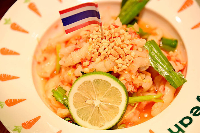 泰式金边炒粉:经典的泰式味道.配料丰富味道香极了.原汁原味的呈现.吃的时候把辣椒面、花生碎拌进去.和在泰国吃得一模一样。
