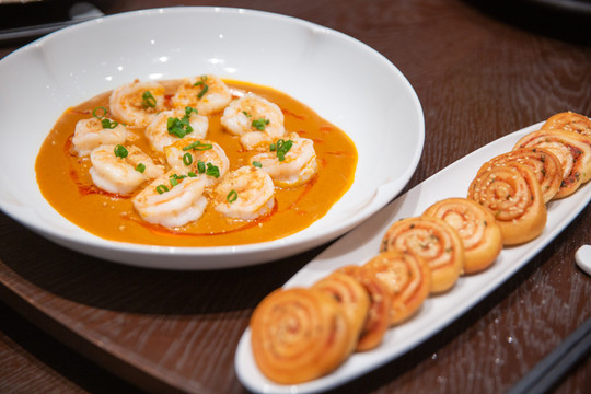 餐厅菜品既有经典菜肴,也有创新融合菜,比如沙茶明虾球配乳香饼,用厦门经典的沙茶酱与虾球搭配,带给你耳目一新的口感体验。