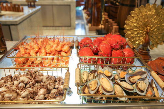 自助晚餐汇聚了全球美食,海鲜、刺身、烧烤、甜品、牛排…特色档口应有尽有。近期推出的小龙虾和东南亚美食也非常受欢迎。