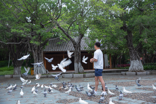 第三是体验各种有趣独特的玩法,一定要带小朋友来这个广场喂鸽子,向空中撒鸽粮,近百只白色的鸽子就翩翩起舞围绕到你身边,人与动物的亲密接触,不仅小朋友开心,大人都会忍不住要多喂几次,拍出刷爆朋友圈的大片。