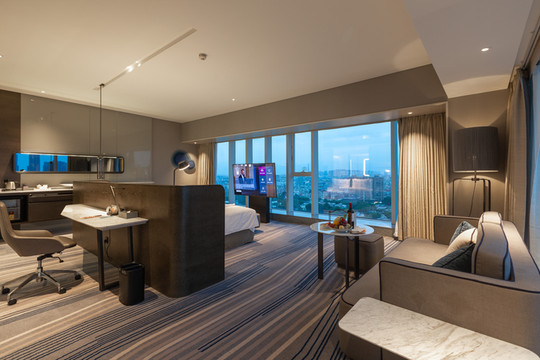 酒店拥有303间新一代设计的“摩登商旅”客房及套房,均可饱览旖旎的海景或波光粼粼的湖景。整体房间色调更淡雅更年轻轻奢,强烈推荐海景房,满屏的海景度假感爆棚。坐在靠窗位置,可欣赏窗外壮丽的海景,以及远处的城市和群山风光。