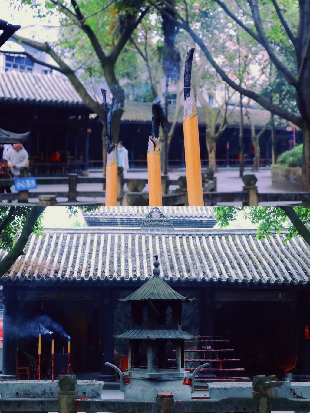 来此供奉香火的香客留下的红蜡还在燃烧,彩色的帘布翻飞,禅院里的小摆件充满了闲情逸趣。
