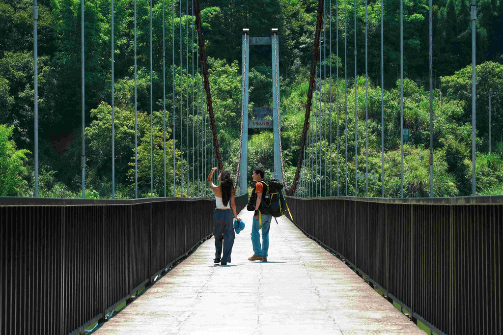 金银寨与花岩寨间,立于水面的拉索桥架起了两岸的美景。
