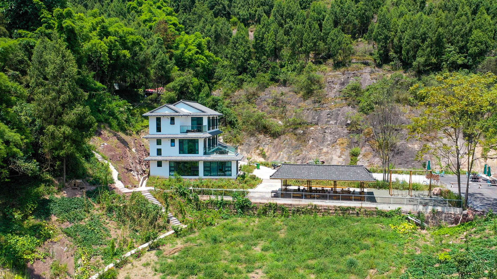 这里是重庆知名画家邓小刚的住宅,占地200多平方米,深居山林间的灰瓦白墙,高低错落建筑被时间褪去了保护色,裸露出砖墙的底色。屋檐前,花草相宜,别有一番乡村气息。