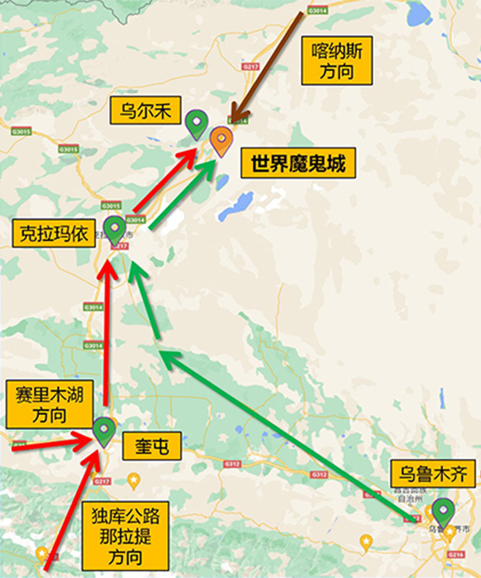 1、乌鲁木齐或伊犁地区前往喀纳斯,沿途经过世界魔鬼城