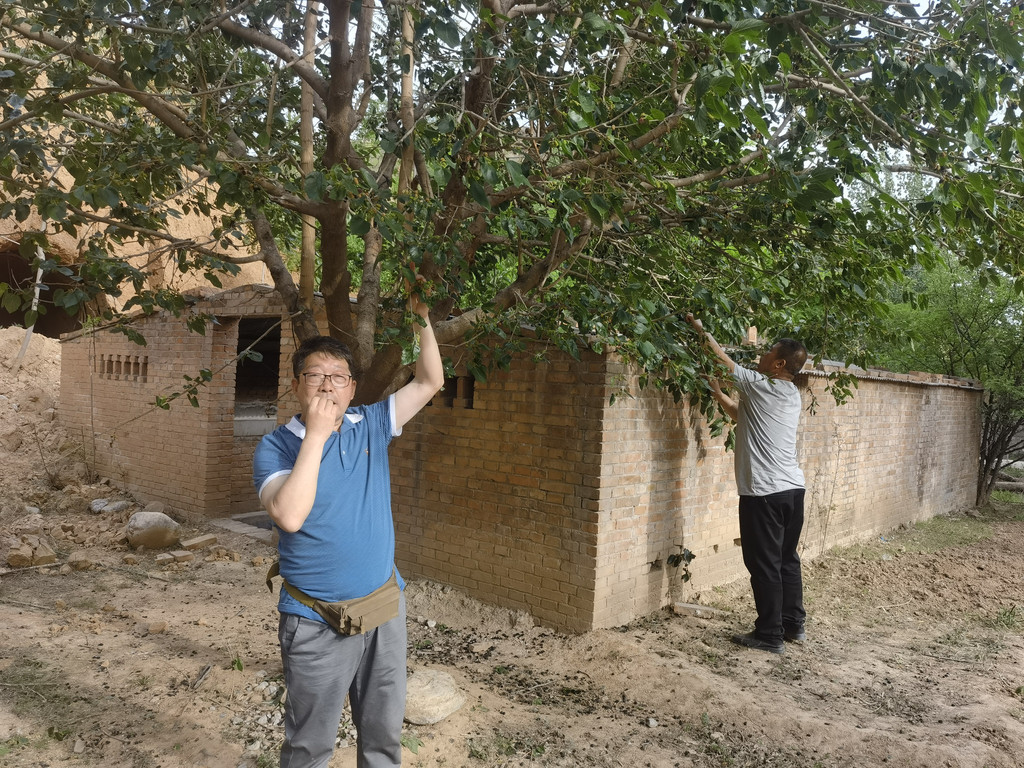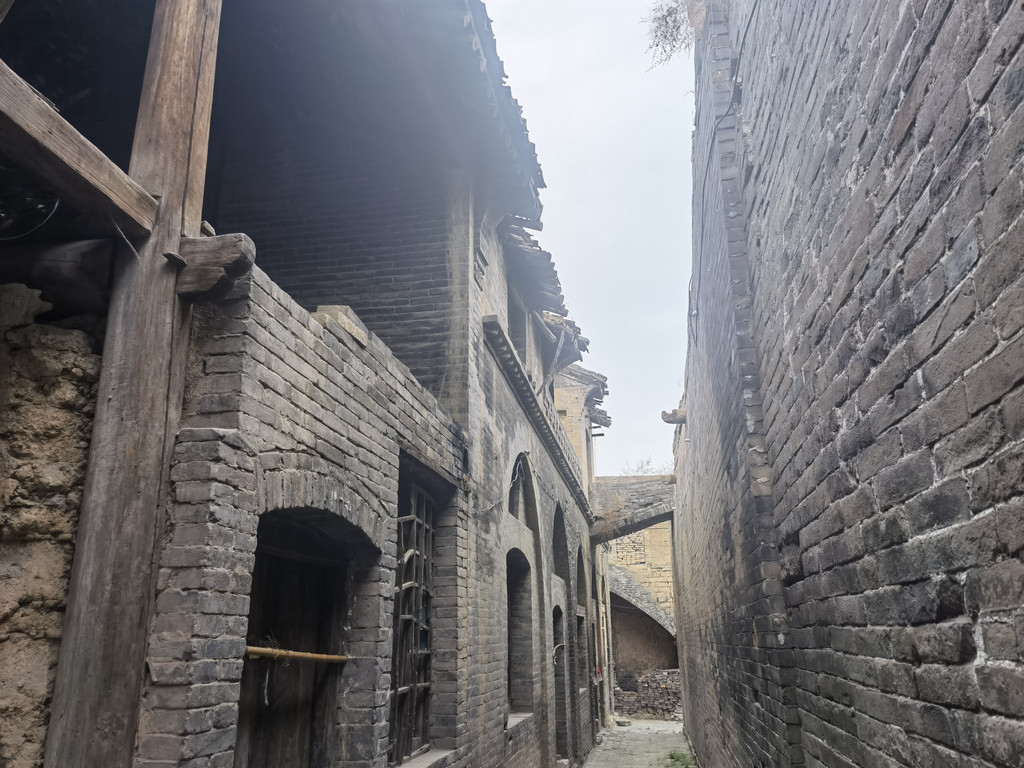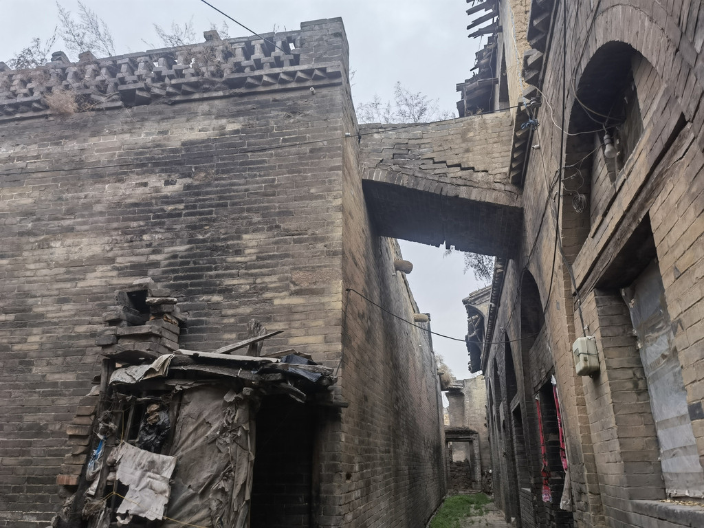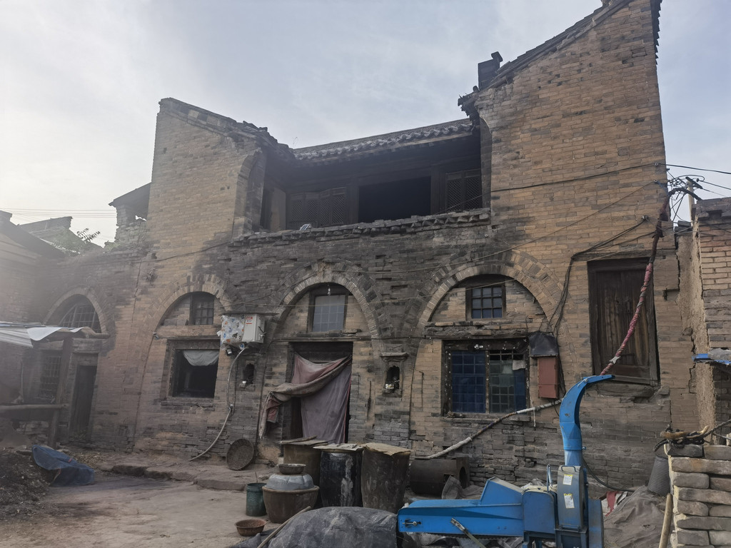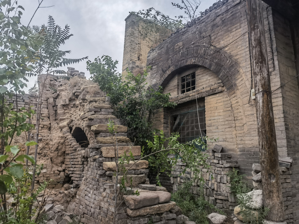 后来我们在村里其他几户民居也进行了参观,很多荒废的老院落杂草横生、荒芜不堪,这些民居,大多都有一百年以上的历史,多数是明清建筑结构,外观上以窑洞为主,建筑风格各有千秋,都是青砖墙体,这也是当年财力的象征。刘小义老先生还不辞辛劳的带我们翻墙头去看老宅院。