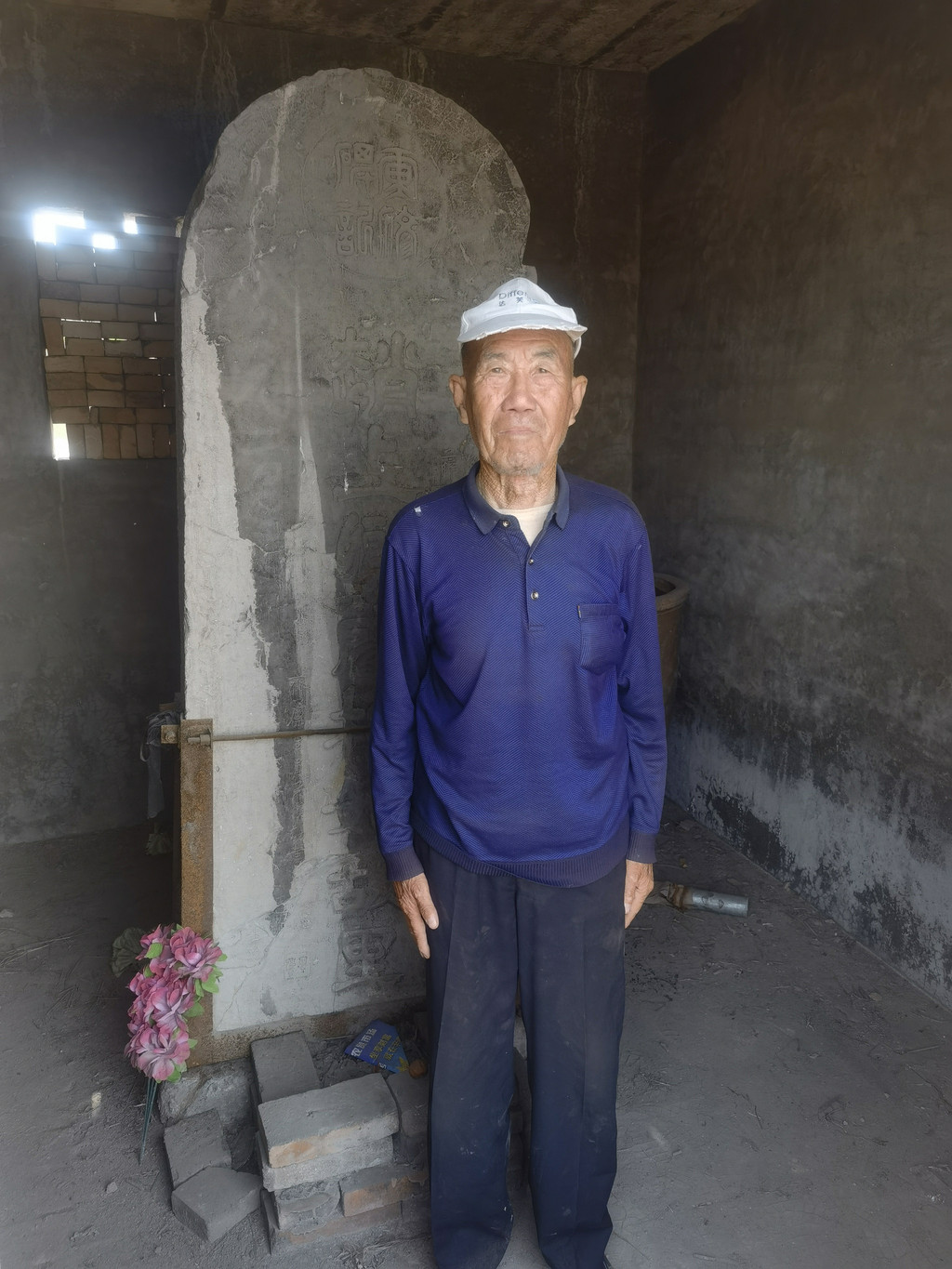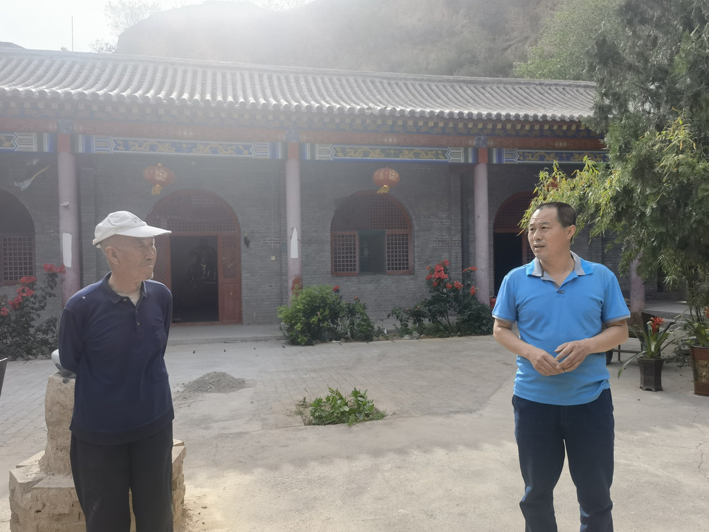 5月25日下午,计划探访许村蔺相如故里,查到的线索就是那副“蔺相如故里石碑”,石碑在哪里我们并不知道。在村委会门口我们向一位六七十岁的老先生打听,一无所获。我们决定在村里探寻一下,同行的张文革提议先去龙泉寺看看,说不定会在那里存放。刚走进胡同,迎面过来一位老先生,同事常心平向前询问,老先生说他知道,并且要带我们去,我们顿时兴奋起来。老先生姓任,已经71岁,为人非常热情。在路上任先生又看到一位老先生,告诉我们石碑是这位老先生保存起来的,我们又邀请了老人家。老人家今年87岁,叫蔺松山,自称是蔺宰相的后代,19岁入党,以前在村里当过支书。
