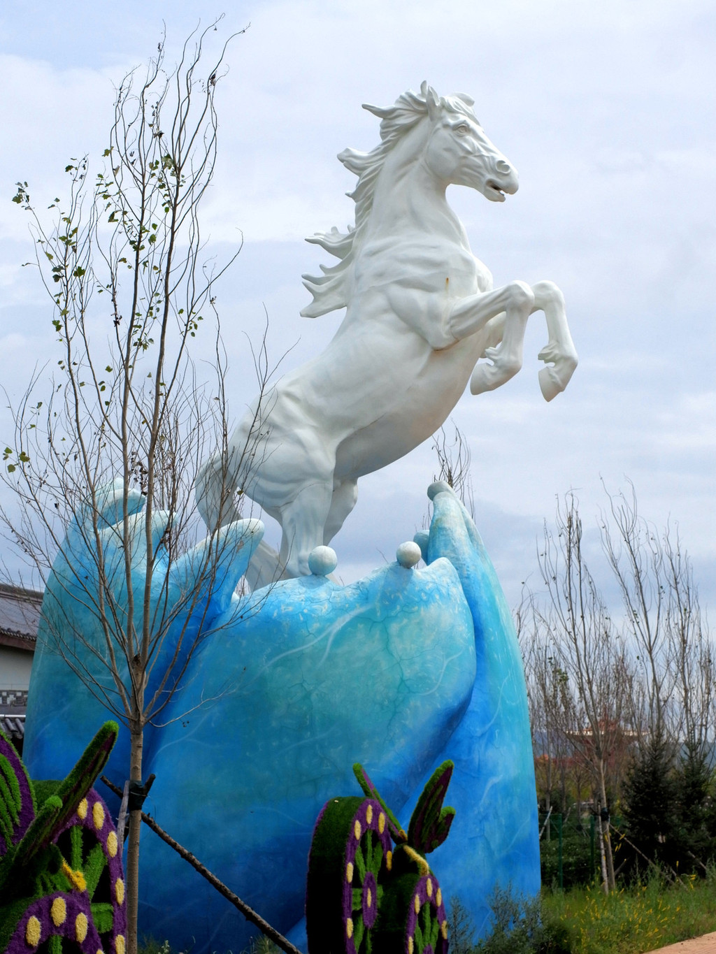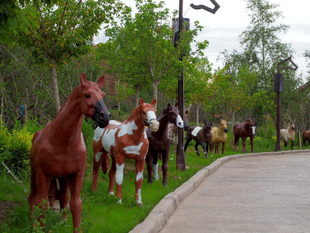 当我们离中国马镇旅游度假区越来越近的时候,你会发现高速两旁的山越来越绿,天越来越蓝,我们在车里看到天上的白云,感觉触手可得,甜蜜的感觉像是大大的棉花糖。当车驶入中国马镇的景区时,我的第一感觉是来这里是正确的选择,这里非常适合亲子旅行,儿子忍不住打开车窗,向用绿植做的小马和吉祥物们招手。