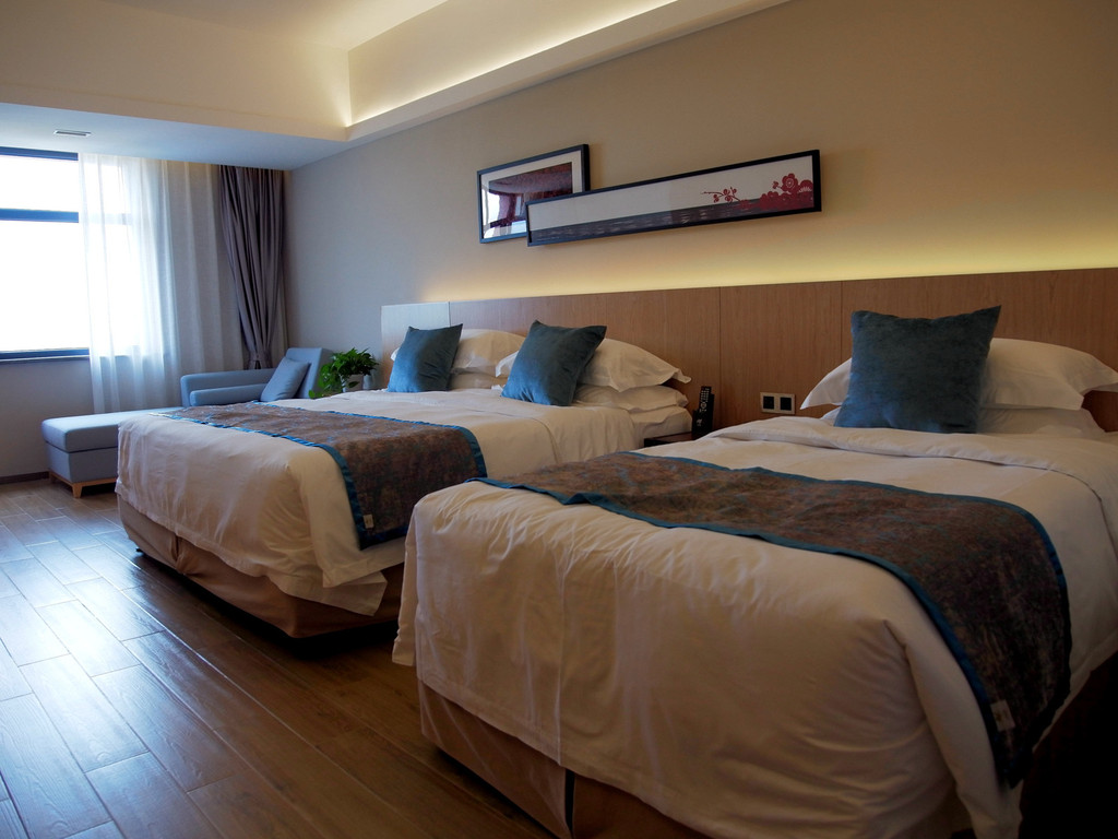 叮咚,我们到了房间,打开房门,亲子房间温馨舒适。她是位于中国马镇的一家高档酒店,集会务、商务、住宿、餐饮、休闲娱乐为一体的综合性高档酒店。特别适合亲子带娃,房间里有一个双人大床和一个单人床。一家四口完全OK。