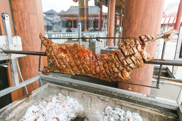 重头戏来了,在这里#烤全羊#需要提前预定,烤全羊是以农牧为主的少数民族特色美食,草原民族宴席上的名菜。烤熟的羊色泽金黄,香味扑鼻。剔肉切丝,不膻不腻,美味无比。