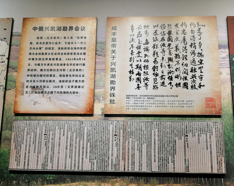 到达兴凯湖下车时,只剩下我和另一个游客,这个落客点的内侧是小兴凯湖,外侧是大兴凯湖,我们先去看大湖,兴凯湖水又浑又黄,一眼望不到边,“边”就是属于俄罗斯的湖,没多少看头,之后我不惜一个人来回走了3.4公里去看新开流遗址,就一个复原的墓,有历史意义,但也没多大看头,11:45坐车回密山,在小店吃了个筋头巴脑后回汽车站取包后坐上火车去鸡西,在紧车站边酒店住下了。
