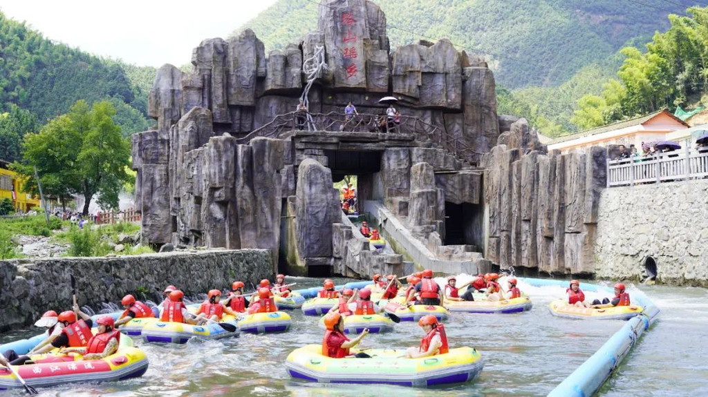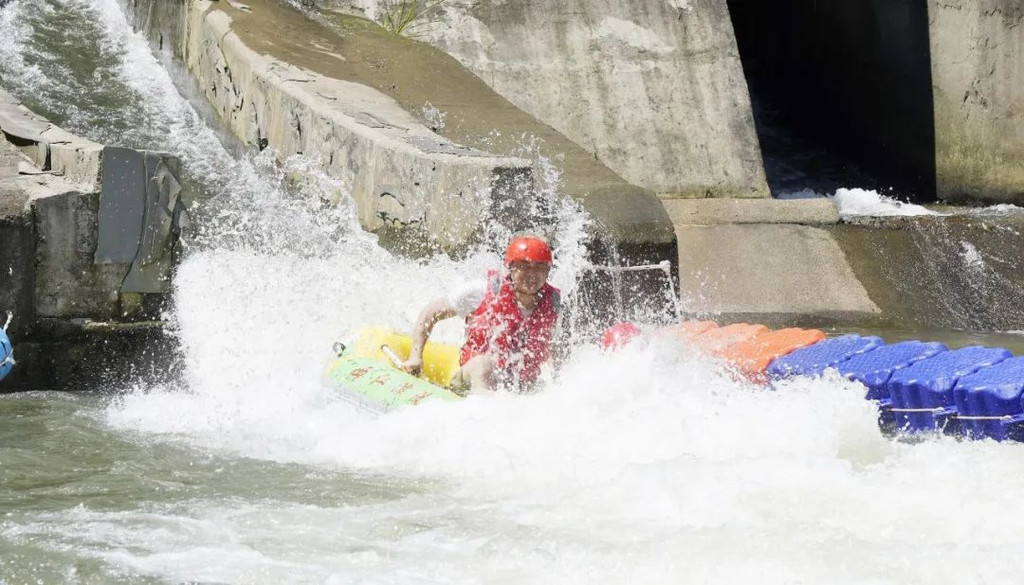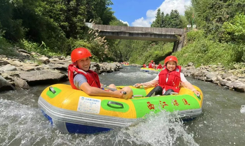目前,西江漂流正处于试营业阶段,但景区的游客依旧络绎不绝。游客们乘着皮艇,在急流段感受水花飞溅的肆意快感,在缓流段感受树荫掩映下泛舟溪上的悠闲惬意,或是借用水枪和同伴好友水柱“对射”……水面上顿时飘散出阵阵欢声笑语,身心得到极大放松和愉悦。