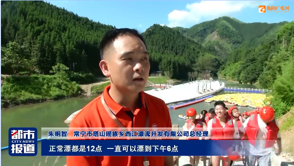 “到了我们塔山,上午是有一个瑶族风情的一个节目演绎,正常漂都是12点,一直可以漂到下午6点,我们接待量一天可以接待2000多人。”常宁市塔山瑶族乡西江漂流开发有限公司总经理朱明智解释道。