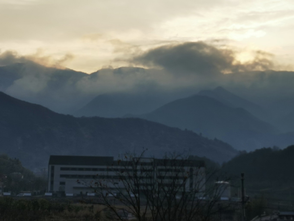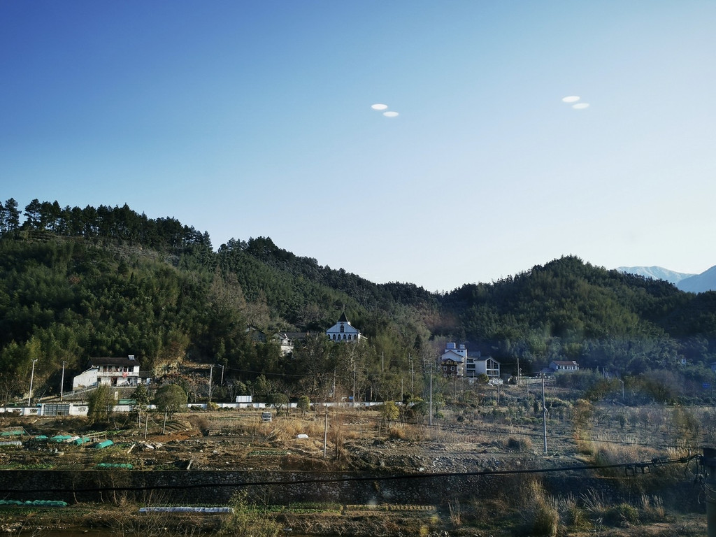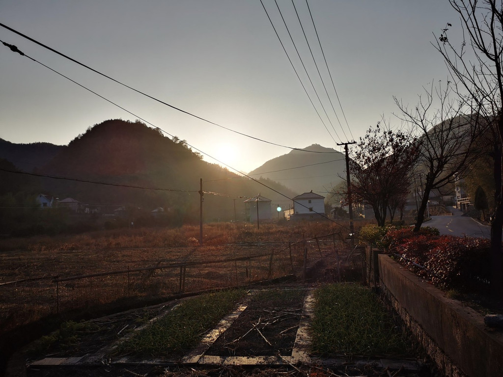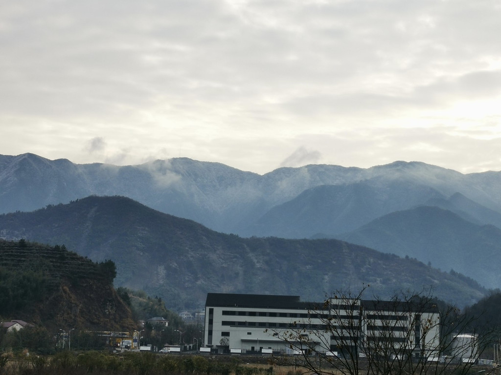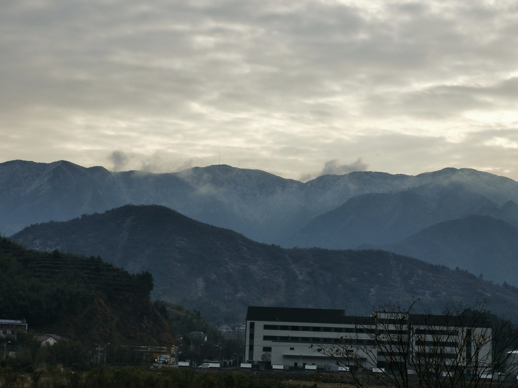 冬日的早晨气温很低,但是却有了晴天,于是就正在窗口抬头向窗口望去,惊喜地发现七点多钟还能见到龙王山日出,