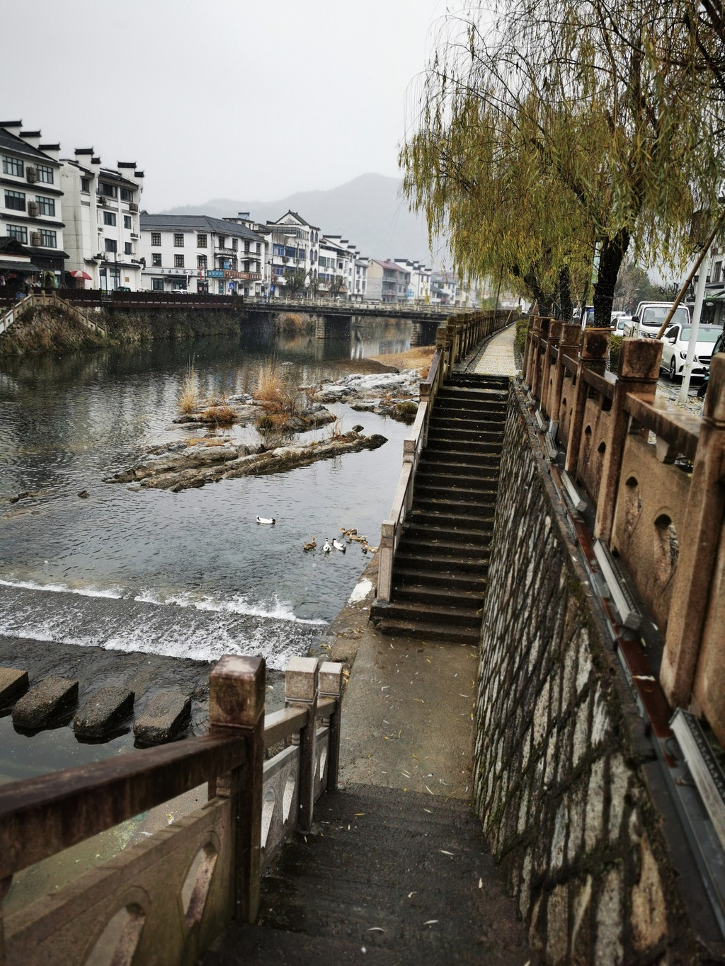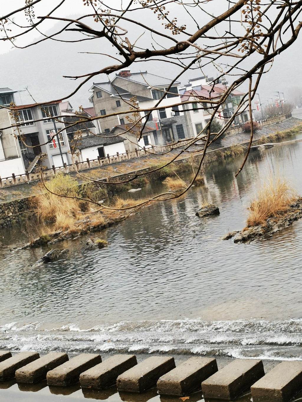 村民可以沿着 石台 阶进出两岸