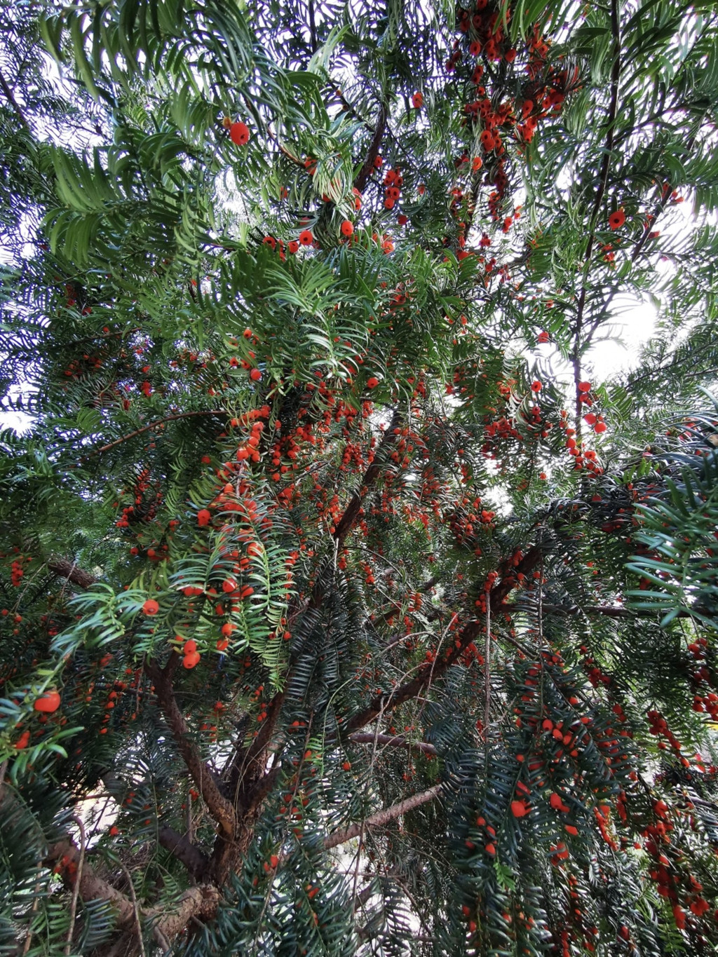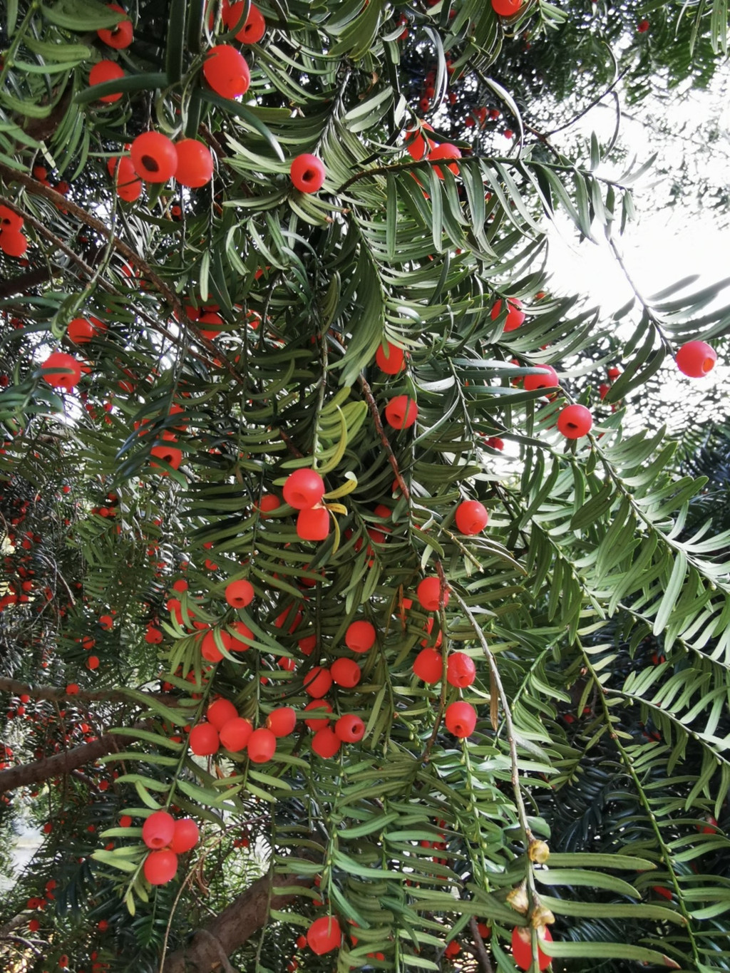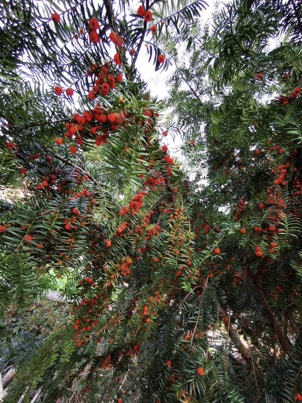 通过亭子可以来到一些农田,农田里种植着不少稀有的红豆杉,红豆杉树丛下有不少红色耀眼的小果子,这个具有珍贵的药用价值红豆,可以泡酒喝。