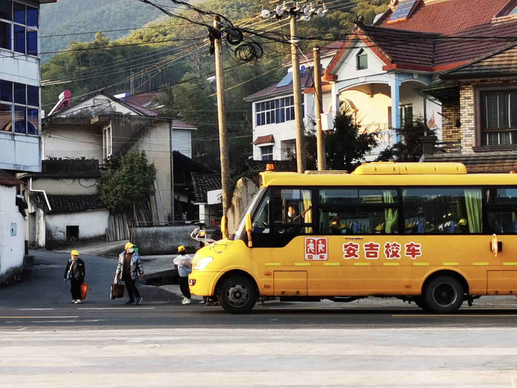 安吉 县章村有小学有校车接送,这里的孩子真是幸福,重视教育,在 浙江 可以体现出来。