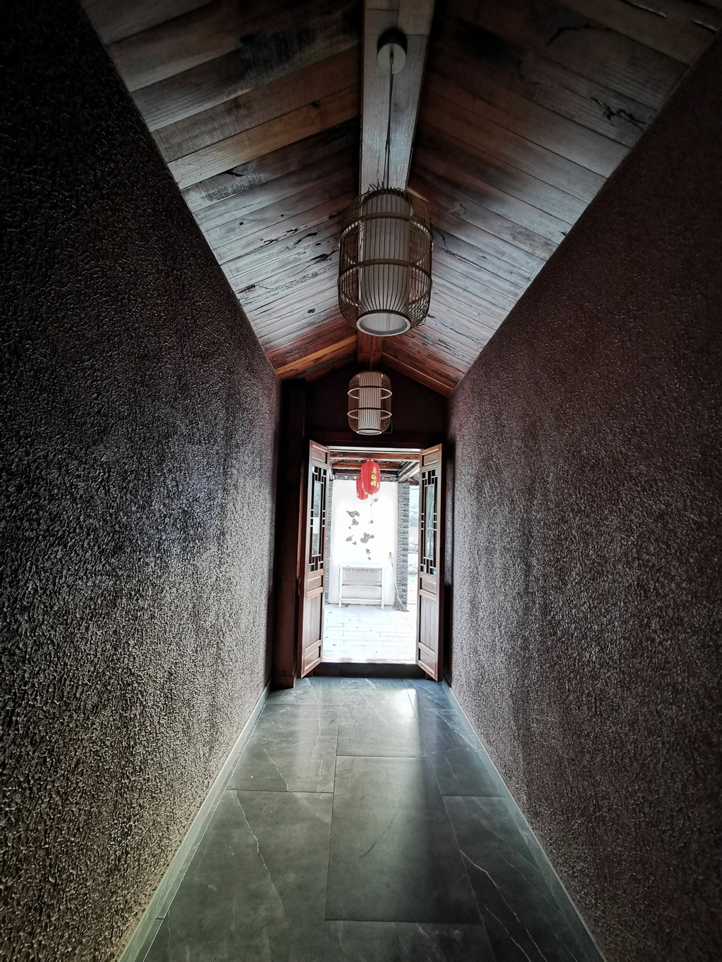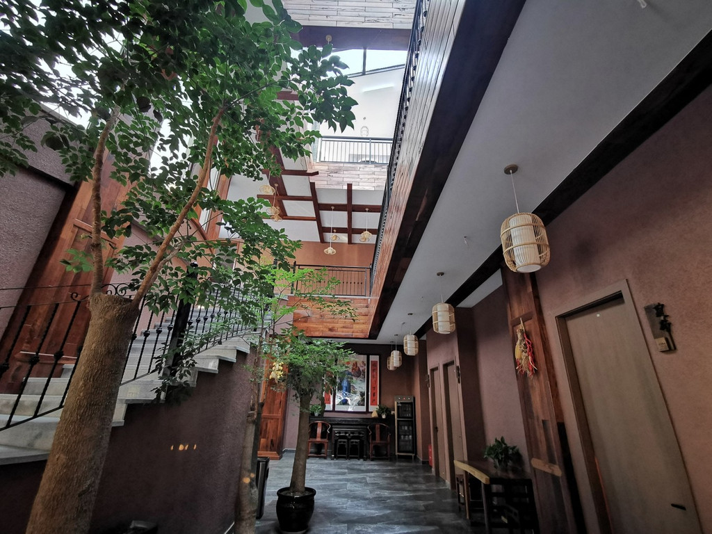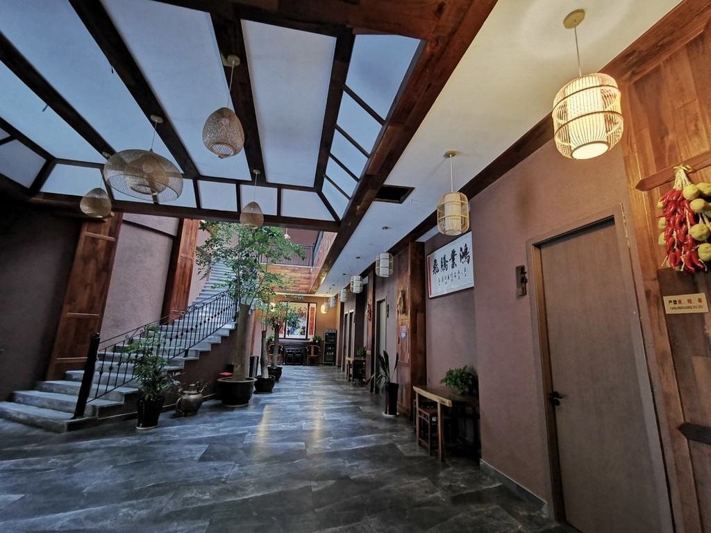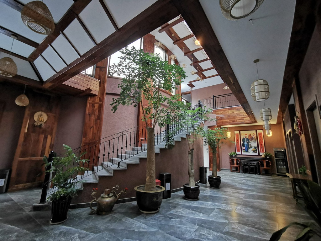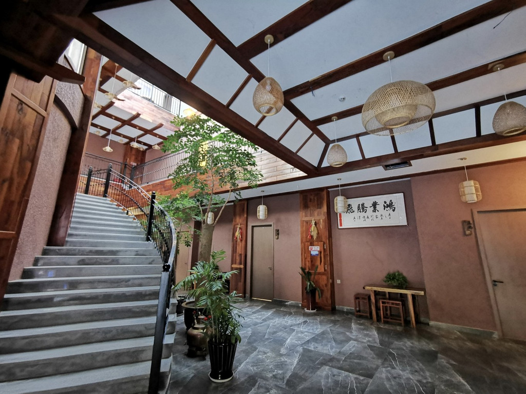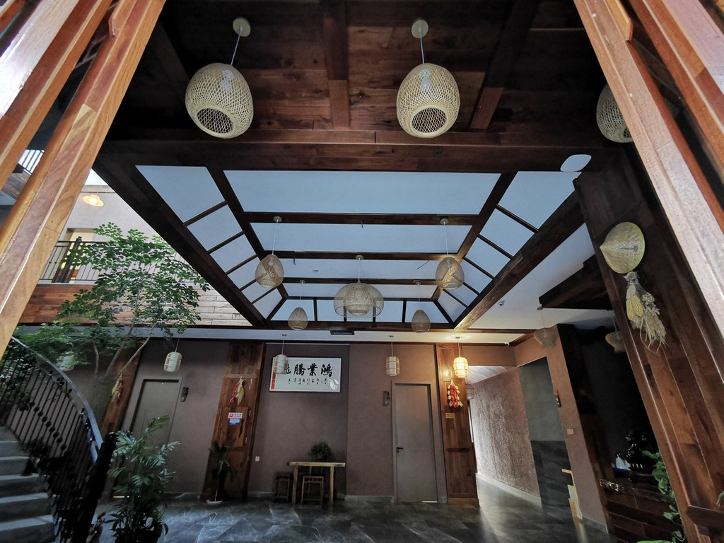 民宿内部装修风格独特,高耸挑高的屋顶让你没有压抑感,别致美观的楼梯转角而上,来到二楼的房间,
