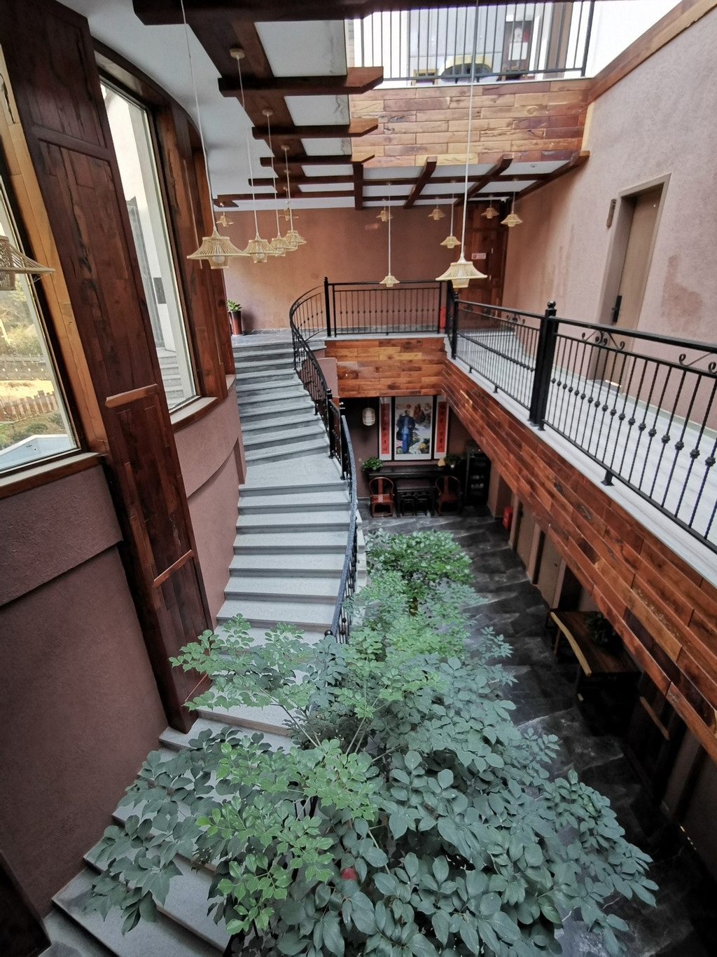 沿着木铺设的地板可以到2楼,3楼、4楼没有电梯得自己爬楼梯,还好不高。