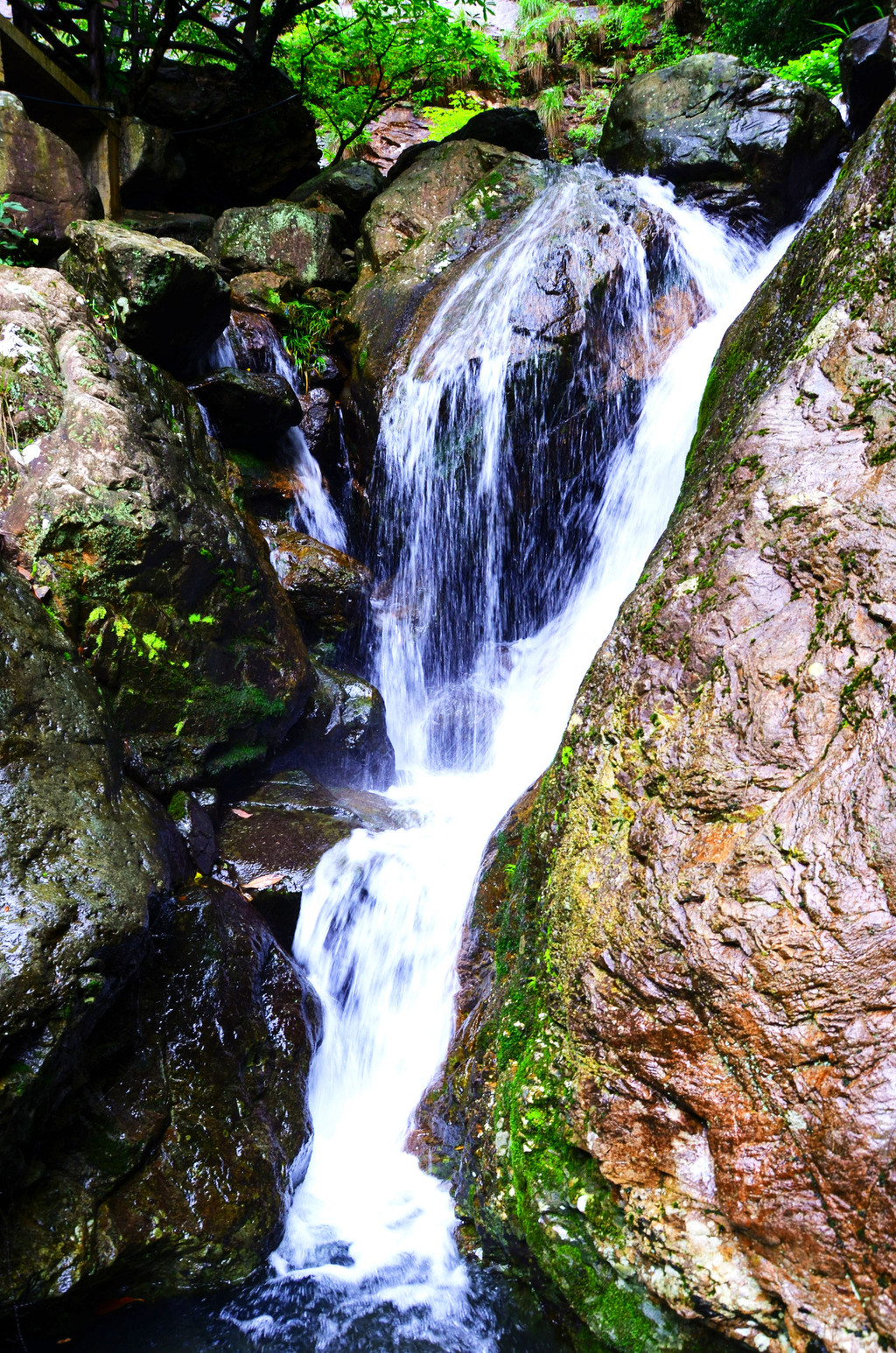 一路上行,数十条大小瀑布从山壁岩崖间飞泻而下,“七仙飞瀑”犹如七位仙女下凡,见瀑起舞,个个身材曼妙、飘逸。