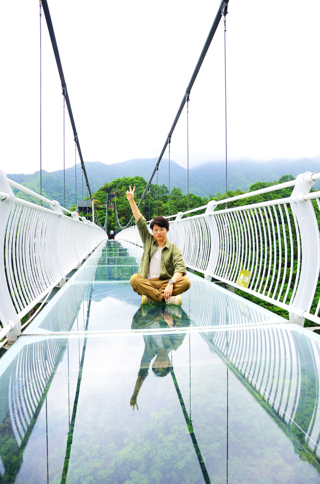 玻璃桥离地面有60多层楼高,人在桥中走,云在身边飘,这是我们停留时间最长的地方。