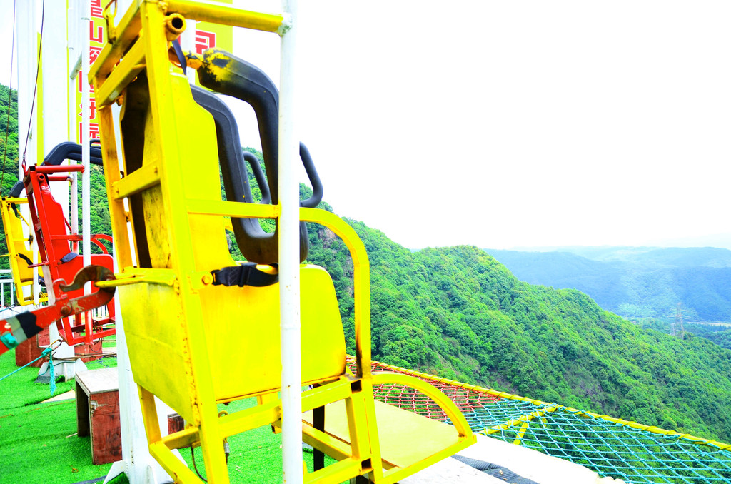 与高空漫步对应的位置有一个这种的项目,瞧瞧,护栏都没得,这简直是想蓄意谋害游客啊,富龙我还叫不出项目的名字,好在是雨期,它暂停开放了。